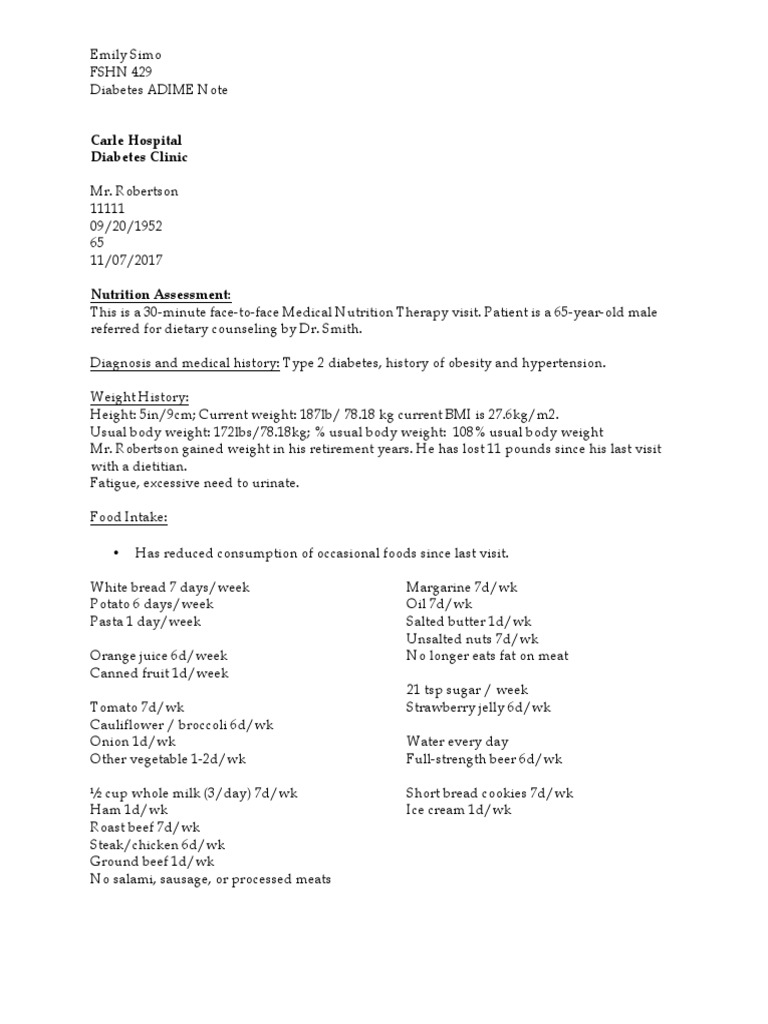 Adime Note Template PDF Obesity Diabetes