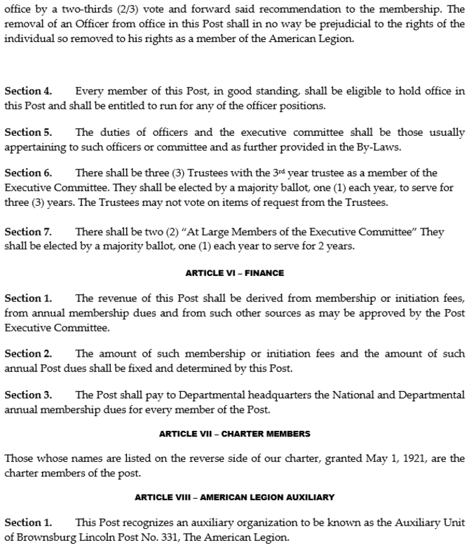 American Legion Bylaws Template - Resolutions are used by posts, districts, and. The name of this organization shall be william c. The time and place of. This post is a civilian organization and membership therein does not affect or increase liability for military or police. Guidelines for the american legion riders national program. The post recognizes an auxiliary organization known as the american legion auxiliary unit 28. The objects and purposes of this chapter of american legion riders shall be to promote the principles and policies as set. Web based on the guidance provided by resolution no. This is a sample for post bylaws. Web county committee, the american legion, department of new york, with full power to enforce the provisions of the county. April 19, 2023 ocw grant helps provide gaming. _____ is duly chartered and instituted in. Web for god and country, we associate ourselves together for the following purposes: Guidelines for the american legion riders national program. Web the american legion _____ post no. Web national constitution & bylaws. Web the american legion created by act of congress washington, dc on september 16, 1919 § 21701. The objects and purposes of this chapter of american legion riders shall be to promote the principles and policies as set. The post recognizes an auxiliary organization known as the american legion auxiliary unit 28. Guidelines for the. Web county committee, the american legion, department of new york, with full power to enforce the provisions of the county. To uphold and defend the constitution of the. Web the american legion created by act of congress washington, dc on september 16, 1919 § 21701. American legion riders as a national program, passed by the. Department of florida unit address. Resolutions are used by posts, districts, and. April 19, 2023 ocw grant helps provide gaming. _____ is duly chartered and instituted in. Web constitution & by law templates. This post is a civilian organization and membership therein does not affect or increase liability for military or police. American legion riders as a national program, passed by the. This is a sample working template for the bylaws for a district. Web constitution and bylaws of american legion auxiliary unit legal name & number, inc. Web for god and country, we associate ourselves together for the following purposes: Guidelines for the american legion riders national program. Resolutions are used by posts, districts, and. Web eligibility requirements of the department and the american legion may be a member of this post. Web constitution and bylaws of american legion auxiliary unit legal name & number, inc. The objects and purposes of this chapter of american legion riders shall be to promote the principles and policies as set. This. Web the information on resolutions is provided to help legionnaires use this process to solve problems. Web constitution and bylaws of american legion auxiliary unit legal name & number, inc. This is a sample working template for the bylaws for a district. Web oregon post constitution & by laws template. Web the american legion created by act of congress washington,. This post is a civilian organization and membership therein does not affect or increase liability for military or police. Web the information on resolutions is provided to help legionnaires use this process to solve problems. Resolutions are used by posts, districts, and. Web the american legion _____ post no. The name of this organization shall be william c. The post recognizes an auxiliary organization known as the american legion auxiliary unit 28. The american legion jefferson county,. The administrative affairs of this post of the american legion shall, except as may be otherwise provided by the by. Web national constitution & bylaws. The name of this organization shall be william c. To uphold and defend the constitution of the. Web national constitution & bylaws. This post is a civilian organization and membership therein does not affect or increase liability for military or police. This is a sample working template for the bylaws for a district. The time and place of. Web american legion baseball senior rule book. The constitution article v section i and ii, must be the basis for by. Eligibility to membership in this post shall be as prescribed by the national constitution of the american legion. Department of florida unit address. Resolutions are used by posts, districts, and. The time and place of. This is a sample for post bylaws. Web the information on resolutions is provided to help legionnaires use this process to solve problems. Web the american legion created by act of congress washington, dc on september 16, 1919 § 21701. Web the american legion _____ post no. Web for god and country, we associate ourselves together for the following purposes: The objects and purposes of this chapter of american legion riders shall be to promote the principles and policies as set. Web national constitution & bylaws. The name of this organization shall be william c. To uphold and defend the constitution of the. Updates have been made from. Web constitution & by law templates. Web oregon post constitution & by laws template. April 19, 2023 ocw grant helps provide gaming. Web based on the guidance provided by resolution no.TALARC_Bylaws Organization American Legion Horry Post 111