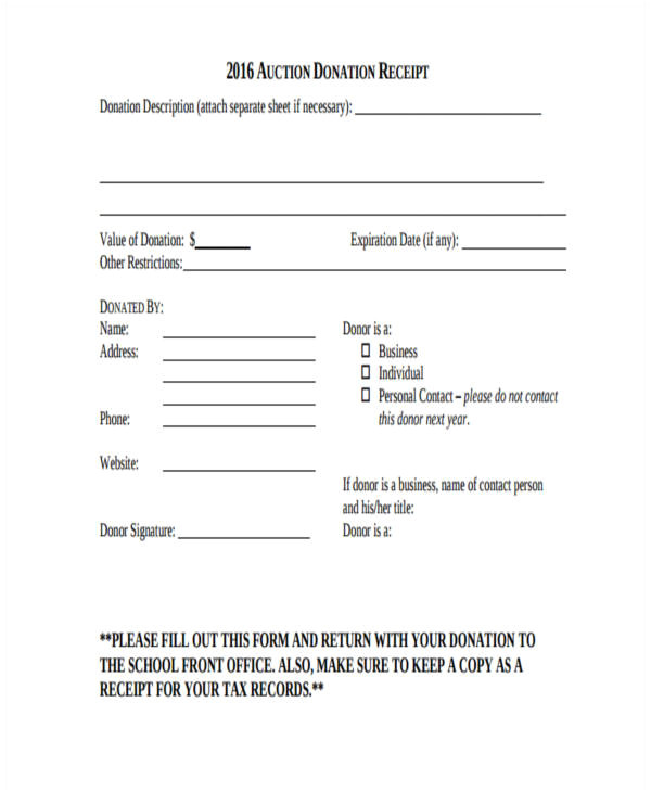 Printable Silent Auction Donation Tax Receipt Template Glamorous