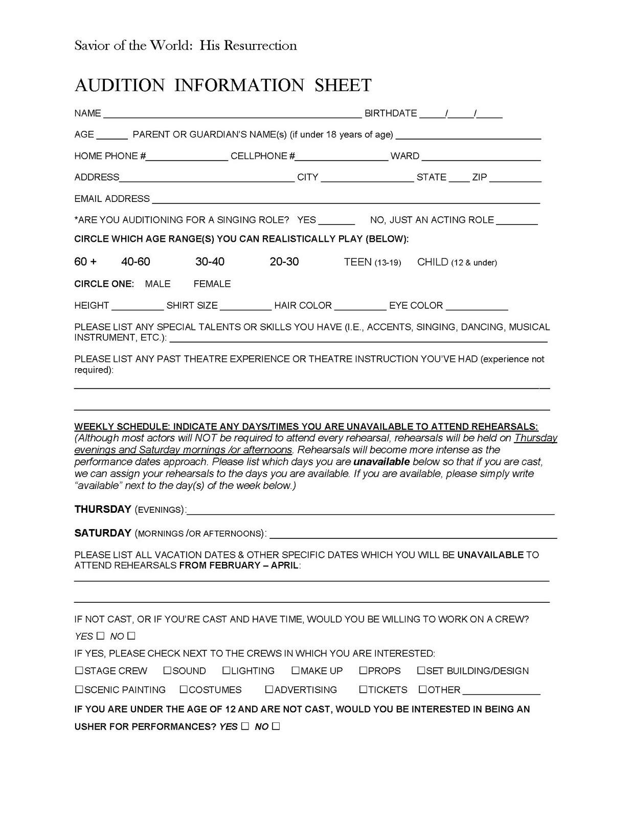 Audition Form Template