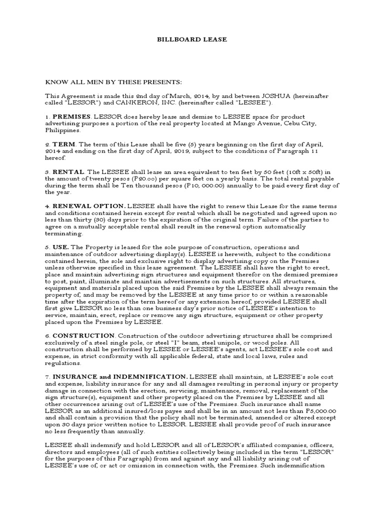 5. Billboard Lease Lease Indemnity Free 30day Trial Scribd