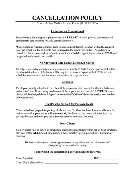 Cancellation Policy Template Form Fill Out and Sign Printable PDF
