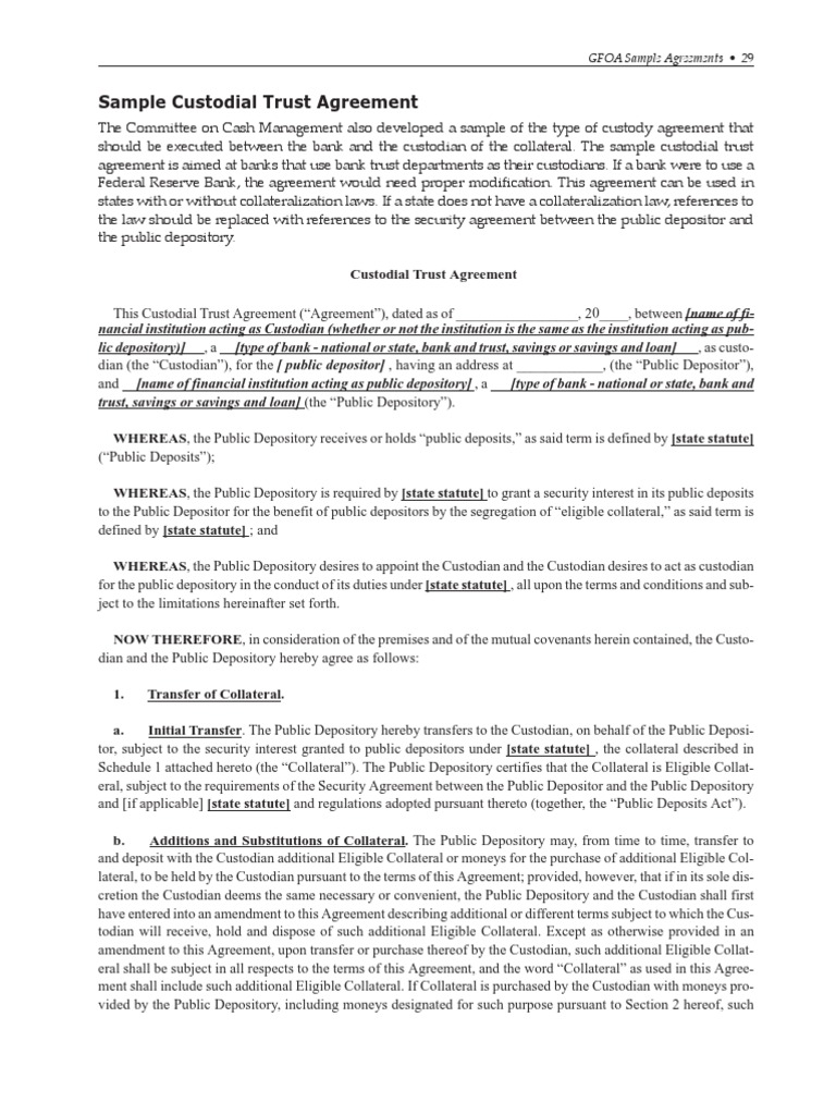 Sample Custodial Trust Agreement PDF Banks Indemnity