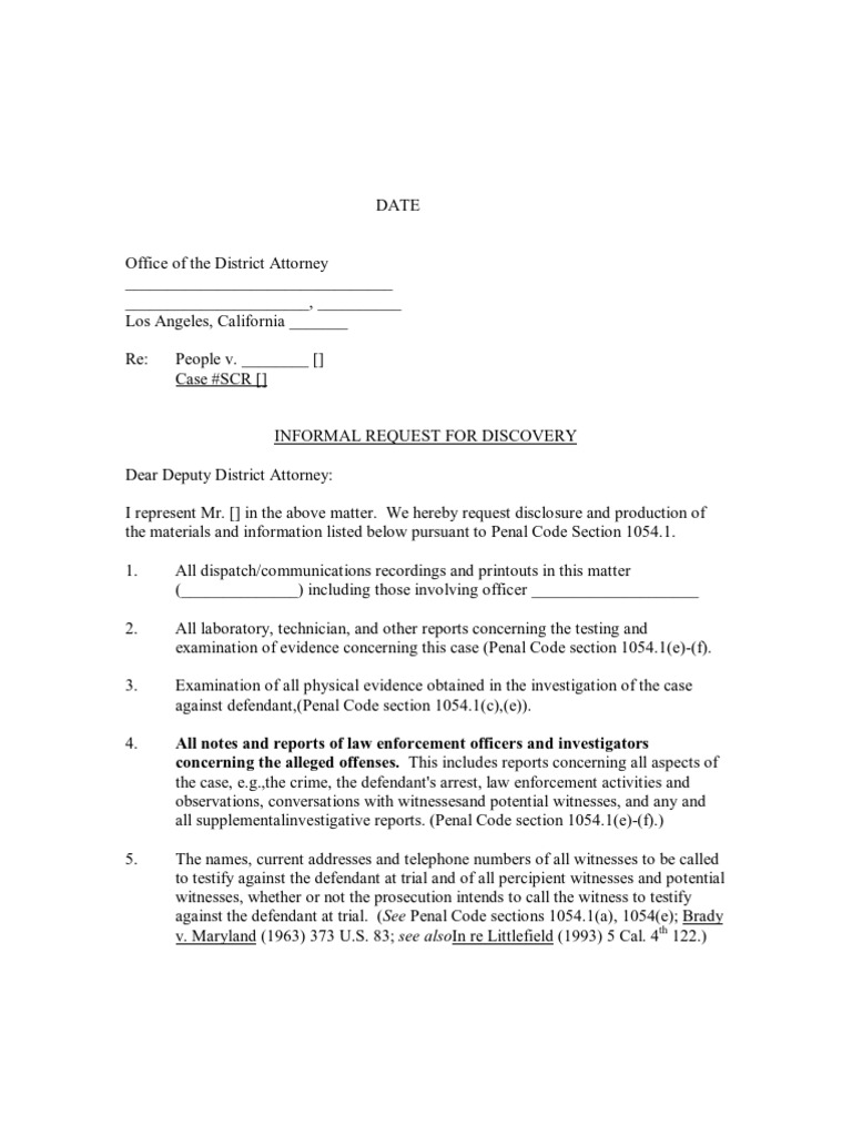 Informal Discovery Request