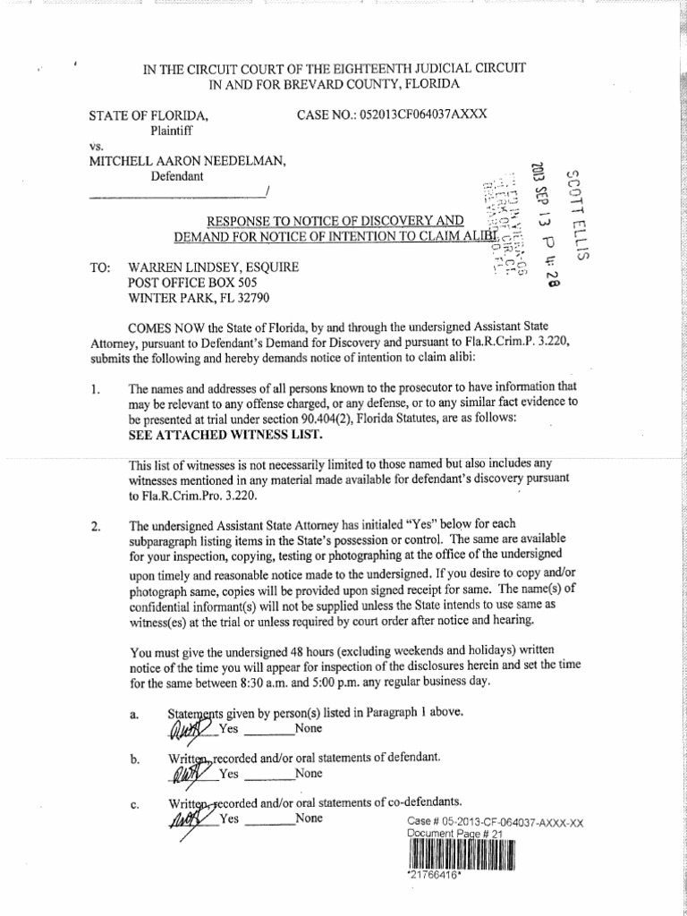 Response to Notice of Discovery