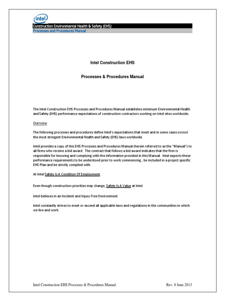 INTEL EHS Manual PDF General Contractor Personal Protective Equipment