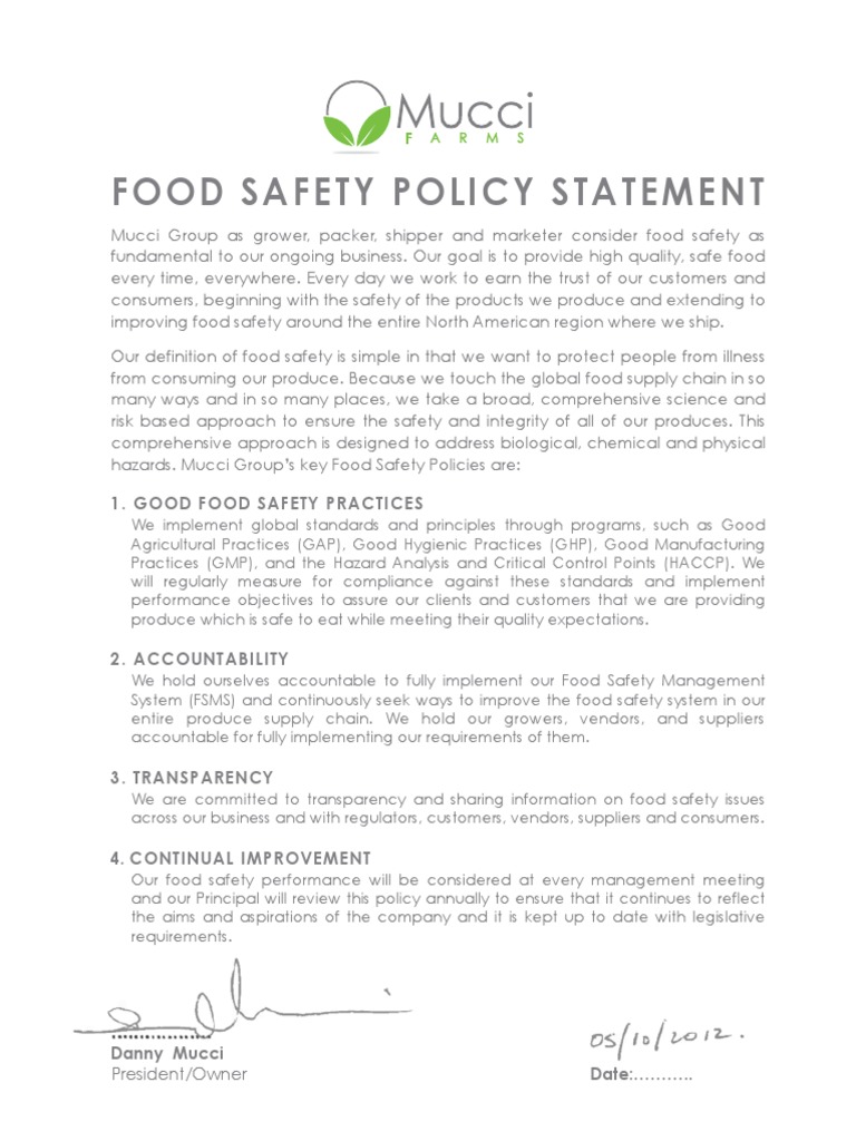Food Safety Policy Template - Web developing a food safety plan. Download this food safety policy template design in google docs, word, apple pages format. Food and drug administration's (fda) food safety plan builder (fspb) is a tool designed to assist owners/operators of food facilities with the development of. Guidance document with fsma compliance clarifications and best practices. Web food safety policy template. The food safety and inspection service (fsis) of the united states department of agriculture (usda) published its final rule on pathogen reduction;. Web meet all statutory and regulatory requirements for quality and food safety, including mutually agreed customer requirements related to quality and food. Guidance document with fsma compliance clarifications and best practices. Web food safety policy template. Download this food safety policy template design in google docs, word, apple pages format. The food safety and inspection service (fsis) of the united states department of agriculture (usda) published its final rule on pathogen reduction;. Food and drug administration's (fda) food safety plan builder (fspb). Web developing a food safety plan. Web food safety policy template. Download this food safety policy template design in google docs, word, apple pages format. Food and drug administration's (fda) food safety plan builder (fspb) is a tool designed to assist owners/operators of food facilities with the development of. Web meet all statutory and regulatory requirements for quality and food. Web meet all statutory and regulatory requirements for quality and food safety, including mutually agreed customer requirements related to quality and food. Web food safety policy template. Download this food safety policy template design in google docs, word, apple pages format. Web developing a food safety plan. Food and drug administration's (fda) food safety plan builder (fspb) is a tool. Web meet all statutory and regulatory requirements for quality and food safety, including mutually agreed customer requirements related to quality and food. Food and drug administration's (fda) food safety plan builder (fspb) is a tool designed to assist owners/operators of food facilities with the development of. Guidance document with fsma compliance clarifications and best practices. Web developing a food safety. Guidance document with fsma compliance clarifications and best practices. The food safety and inspection service (fsis) of the united states department of agriculture (usda) published its final rule on pathogen reduction;. Download this food safety policy template design in google docs, word, apple pages format. Food and drug administration's (fda) food safety plan builder (fspb) is a tool designed to. Food and drug administration's (fda) food safety plan builder (fspb) is a tool designed to assist owners/operators of food facilities with the development of. Guidance document with fsma compliance clarifications and best practices. Web developing a food safety plan. The food safety and inspection service (fsis) of the united states department of agriculture (usda) published its final rule on pathogen. The food safety and inspection service (fsis) of the united states department of agriculture (usda) published its final rule on pathogen reduction;. Web developing a food safety plan. Web meet all statutory and regulatory requirements for quality and food safety, including mutually agreed customer requirements related to quality and food. Download this food safety policy template design in google docs,. Web food safety policy template. The food safety and inspection service (fsis) of the united states department of agriculture (usda) published its final rule on pathogen reduction;. Food and drug administration's (fda) food safety plan builder (fspb) is a tool designed to assist owners/operators of food facilities with the development of. Guidance document with fsma compliance clarifications and best practices.. Web developing a food safety plan. The food safety and inspection service (fsis) of the united states department of agriculture (usda) published its final rule on pathogen reduction;. Guidance document with fsma compliance clarifications and best practices. Food and drug administration's (fda) food safety plan builder (fspb) is a tool designed to assist owners/operators of food facilities with the development. The food safety and inspection service (fsis) of the united states department of agriculture (usda) published its final rule on pathogen reduction;. Food and drug administration's (fda) food safety plan builder (fspb) is a tool designed to assist owners/operators of food facilities with the development of. Web food safety policy template. Web meet all statutory and regulatory requirements for quality. Web food safety policy template. Web meet all statutory and regulatory requirements for quality and food safety, including mutually agreed customer requirements related to quality and food. Download this food safety policy template design in google docs, word, apple pages format. Food and drug administration's (fda) food safety plan builder (fspb) is a tool designed to assist owners/operators of food facilities with the development of. Guidance document with fsma compliance clarifications and best practices. Web developing a food safety plan. The food safety and inspection service (fsis) of the united states department of agriculture (usda) published its final rule on pathogen reduction;.1.3 Food Safety Policy Statement Web