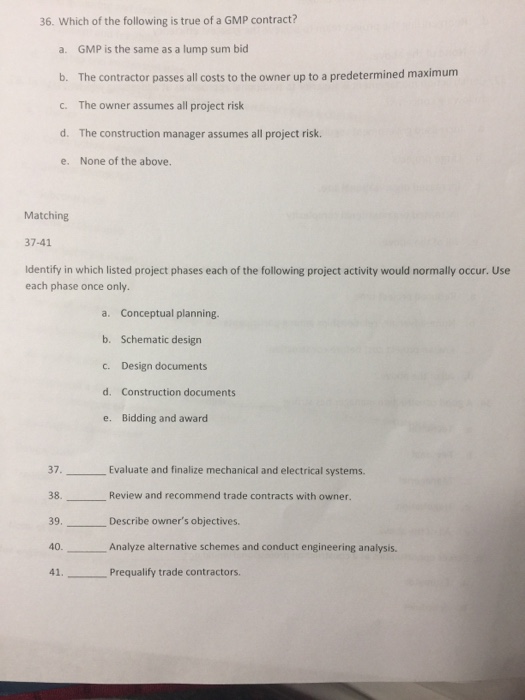 Solved Which Of The Following Is True Of A GMP Contract?
