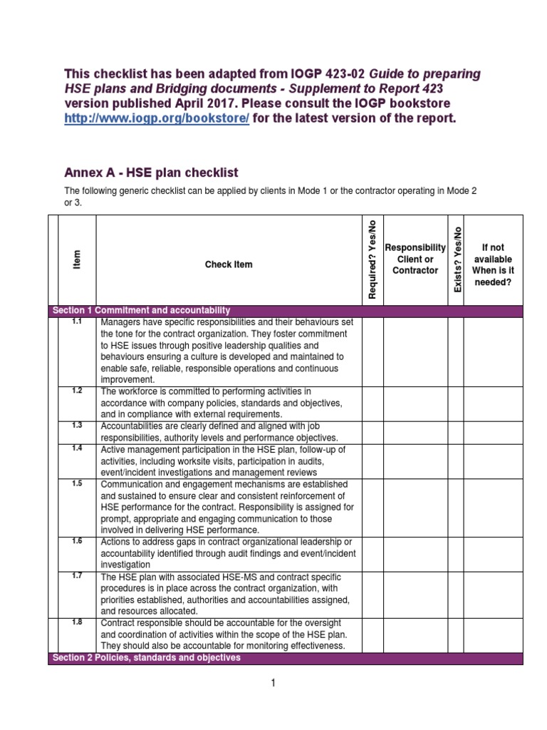 42302 HSE Plan Checklist Editable Risk Risk Management