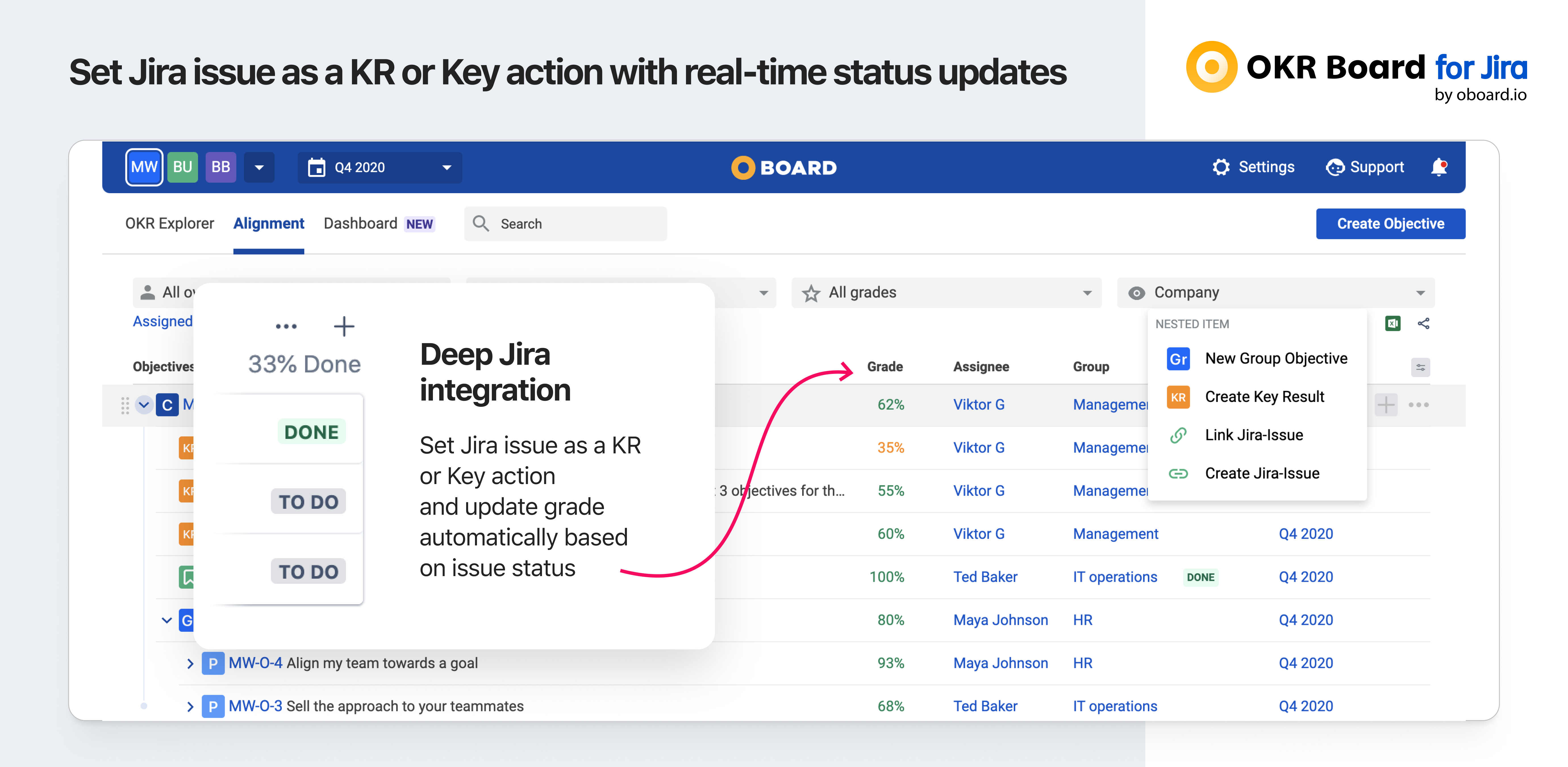 OKR for Jira Create OKRs, achieve focus and alignment towards your