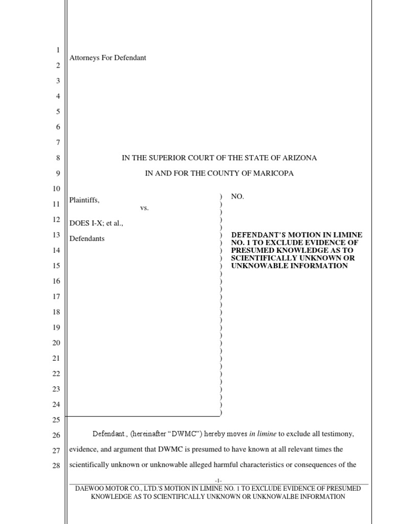 Motion in Limine to Exclude Evidence, Testimony, or Current Regulations