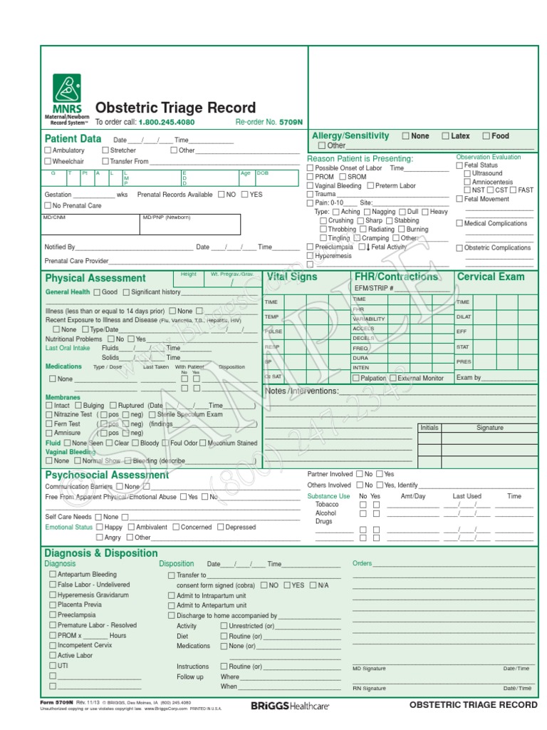 FORM OBSTETRIC TRIAGE RECORD MATERNAL/NEWBORN RECORD SYSTEM 662247