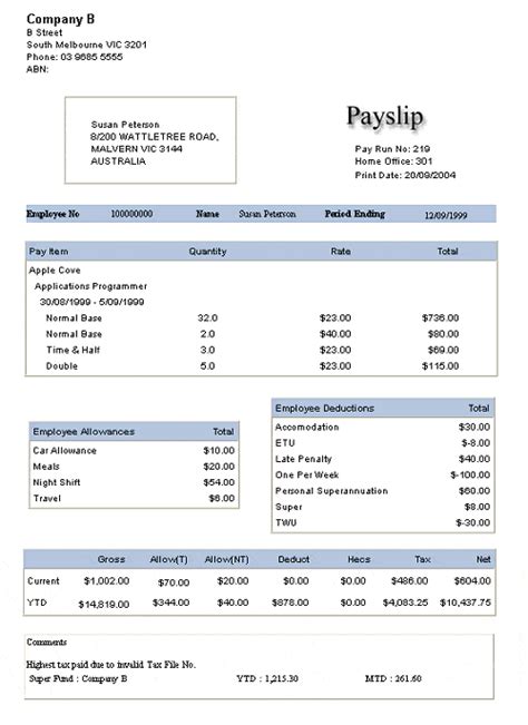 Payslip Template Word