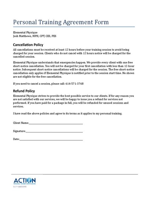 Personal Trainer Forms Personal Training Contract Agreement Template