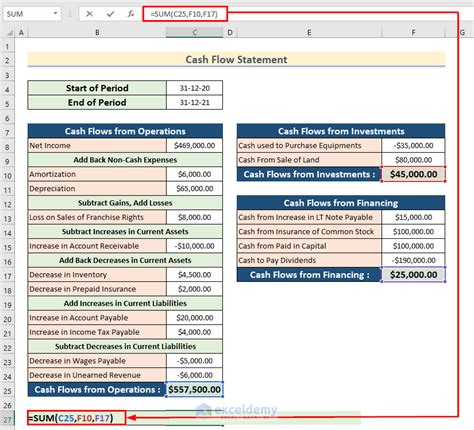 7 Statement Of Cash Flows Indirect Method Excel Template Excel