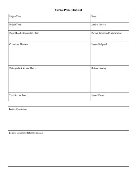 Service Project Debrief Template