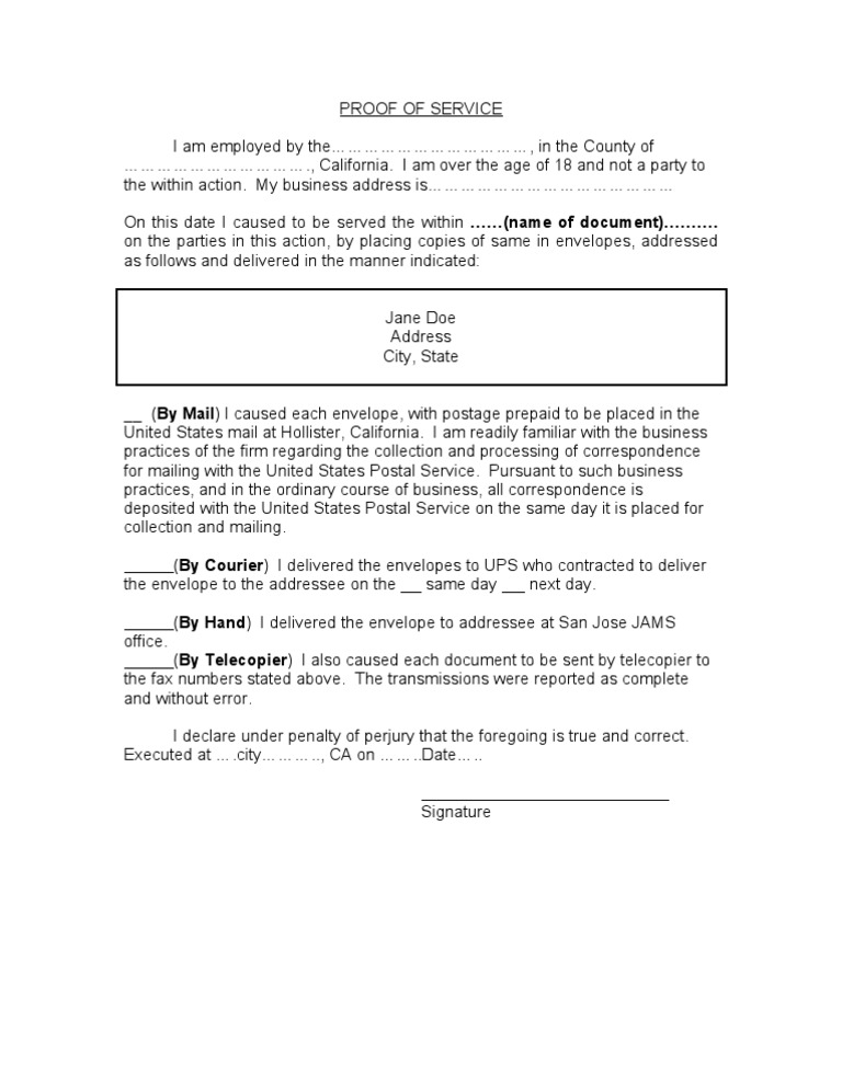 Proof Of Service Template