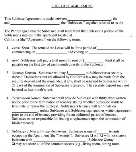 Sublease Agreement Form Sublet Contract Template (with Sample)