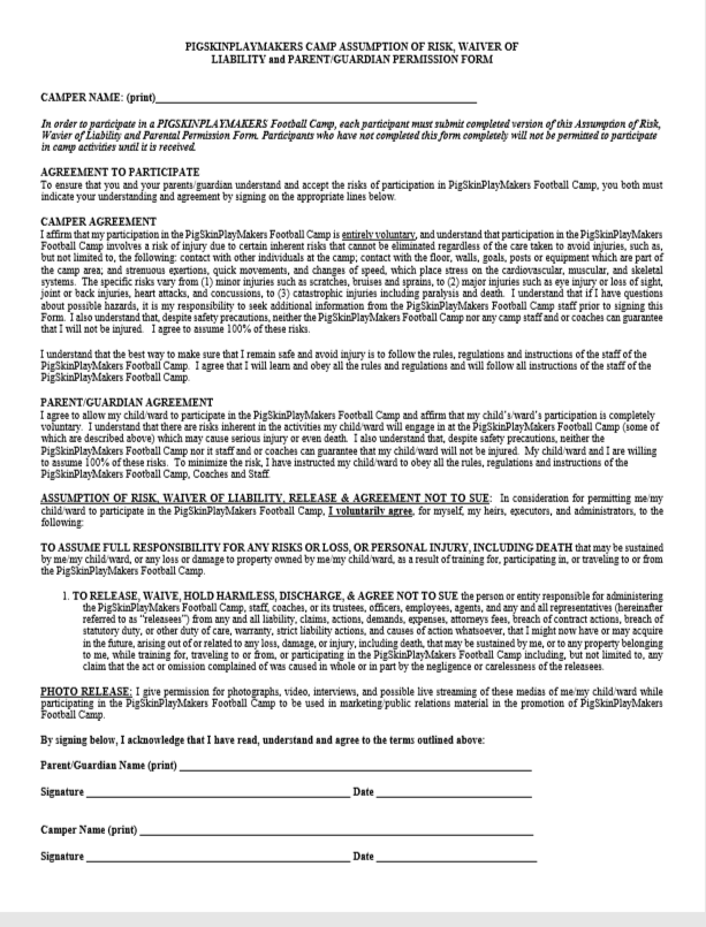 Summer Camp Waiver Template