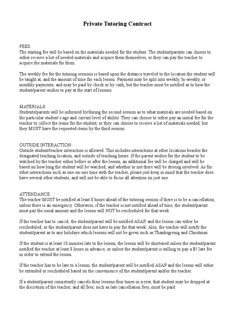 Free Printable Tutoring Contracts