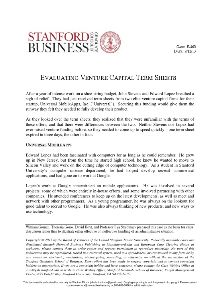 Understanding Venture Capital Term Sheets PDF Venture Capital